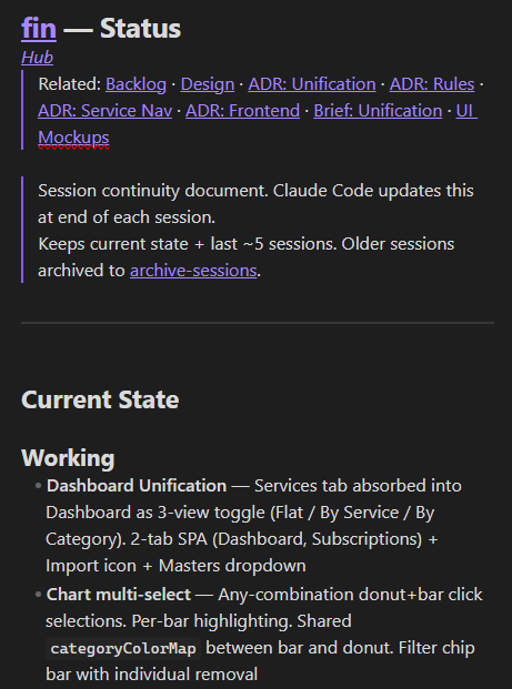 After a week of updating status.md, you have a development journal you didn’t intend to write.